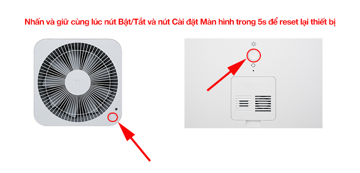 Máy lọc không khí đã kết nối với 1 thiết bị trước đó: Hãy hủy kết nối bằng cách nhấn đồng thời 2 phím như hình bên dưới!