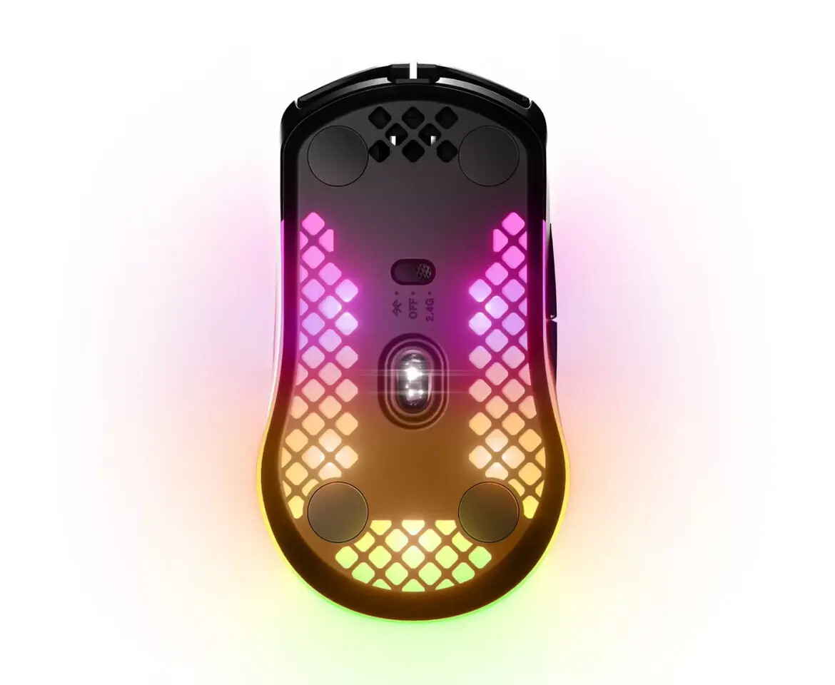 SteelSeries Aerox 3 Wireless là chuột chơi game không dây với thiết kế siêu nhẹ 66 g, được tối ưu hóa hoàn hảo cho những lần lướt chuột nhanh. SteelSeries một lần nữa hợp tác với PixArt trên cảm biến hoàn toàn mới, TrueMove Air, cảm biến theo dõi 1 đối 1 thực sự mới, được thiết kế đặc biệt cho hiệu suất không dây. Cảm biến quang 18.000 CPI, 400IPS, 40G này mang lại tốc độ, tính nhất quán và độ chính xác cần thiết của một con chuột chơi game không dây. Do sử dụng công nghệ cảm biến hiện đại, SteelSeries đã có thể giảm trọng lượng của chuột bằng cách sử dụng một viên pin nhỏ hơn có thời lượng sử dụng lâu hơn đối thủ.