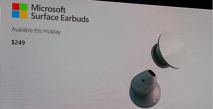 Trong sự kiện Surface tổ chức tại New York, Microsoft đã công bố tai nghe không dây mới có tên Surface Earbuds. Đại diện Microsoft cho biết thiết bị này đem lại cảm giác thoải mái ngay cả khi đeo cả ngày nhờ hình dạng độc đáo của nó.